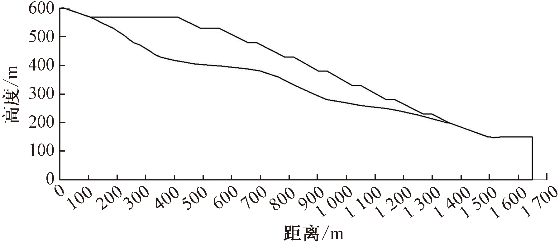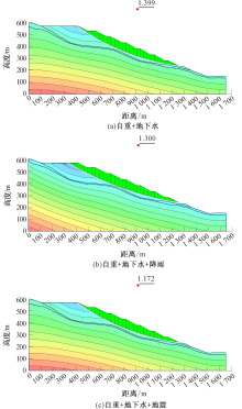 为提高露天矿排土场边坡的稳定性,以西藏某矿区排土场边坡为例,在深入了解矿区场地现状及工程地质条件的基础上,采用极限平衡法进行自重、降雨及地震工况条件下的排土场边坡稳定性分析,并基于快速质量运动模拟(RAMMS)软件模拟排土场诱发泥石流灾害,计算排土场诱发泥石流的运动演化过程,并进行泥石流强度分区。结果表明:排土场在自重+地下水+地震工况下处于不稳定状态,存在失稳滑动的风险,RAMMS数值模拟结果表明:泥石流的发生分为初始运动阶段、沟道流通阶段和堆积-最终阶段,其中,最大堆积深度为25.63 m,最大流速为8.73 m/s,高危险区区域面积占比为50.18%,主要分布于沟道流通区中线坡度稍陡地带。