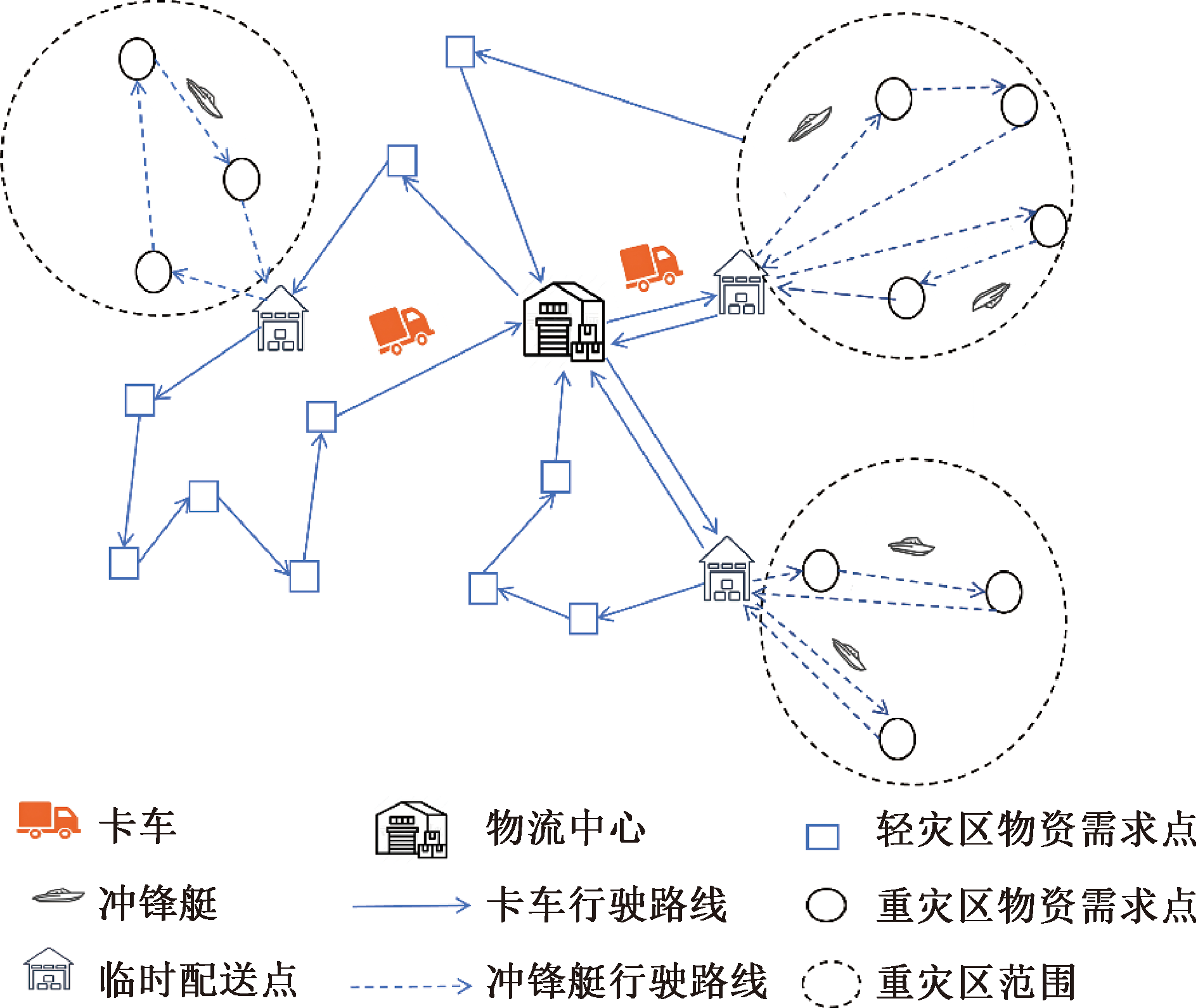 Key words: rescue utility, flood disaster, medical supplies, multi-mode delivery, routing planning, hybrid non-dominated sorting genetic algorithm-II (HNSGA-II)