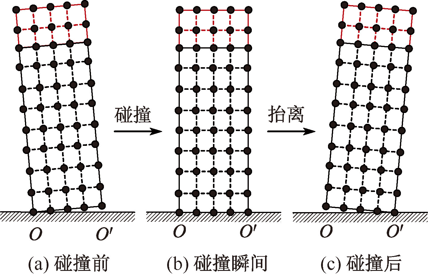 为解决摇摆刚体经典模型误差较大和无法求解非均质及非规则形状刚体碰撞恢复系数的问题,实现对摇摆结构更精准的动态响应预测、设计、安全评估以及振动控制,首先,在摇摆刚体质元能量转换分析基础上,离散化非均质及非规则形状刚体,分析离散单元动能转换;然后,将刚体碰撞过程分为3个阶段:第1阶段计算刚体各离散单元竖向动能被耗散后的剩余动能,第2阶段计算刚体各离散单元沿碰撞后转动角点方向动能被耗散后的剩余动能,第3阶段计算各离散单元剩余动能在内力作用下进行的转换,求解出整个过程的碰撞恢复系数;最后,借助高速数字图像相关性(DIC)测量系统开展摇摆响应测试试验,并验证离散单元动能转换方法。结果表明:该方法求得的均质矩形刚体碰撞恢复系数与试验值之间的相对误差小于3%,远小于摇摆刚体经典模型与试验值的相对误差;其求出的非均质及非规则形状刚体的碰撞恢复系数与试验值相对误差同样小于5%。采用该方法能更精准地预测摇摆结构在受到冲击后的动态响应,提供更合理的结构设计和安全评估。