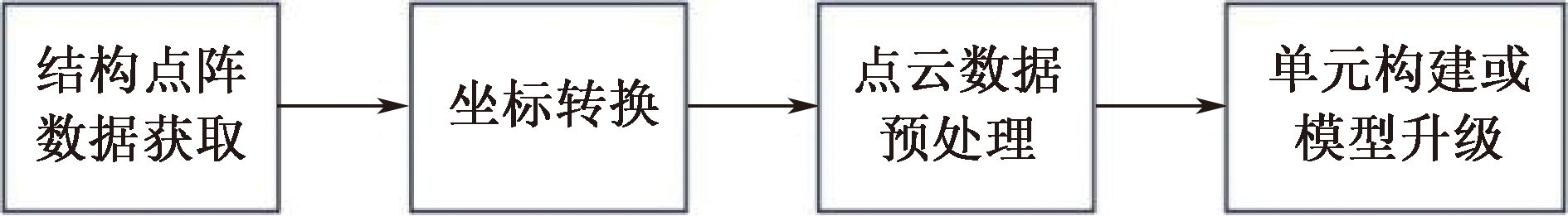 To improve the accuracy of structural safety evaluation results for hazardous chemical storage tanks, a finite element model construction process for storage tanks based on 3D laser scanning was proposed. This process utilized point cloud data to build a finite element simulation model that accurately reflected the actual structural topology of the tank, such as out-of-roundness and local concave-convex deformations, thereby enhancing the accuracy of the analytical model. First, high-precision spatial structural data from the field were acquired using a 3D laser scanning system. A lightweight regularization preprocessing method was proposed, including coordinate system transformation, node correspondence, and coordinate value updates. Next, combined with the finite element model unit construction method, the point cloud nodes with updated coordinates were used to generate a numerical simulation model that accounted for initial geometric defects, followed by an analysis of model accuracy. Finally, taking an in-service dome-roof tank as an example, deformation analysis of the storage tank was conducted based on 3D laser scanning data. A high-precision finite element model construction method was employed to build a full-scale finite element model of the tank wall, and an evaluation of the wall's strength performance was carried out. The results indicate that the point cloud data processing method proposed in this paper enables the construction of a finite element model that accounts for geometric deformation of storage tanks. The spatial position accuracy of the unit nodes can reach 0.01 mm, and the volume of the reduced point cloud data can be decreased by 70%. Compared to traditional finite element simulation models that consider initial geometric deformation, the structural safety evaluation data obtained from this model are more conservative, leading to safer assessment conclusions for storage tanks.